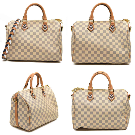 LOUIS VUITTON Damier Azur Braided Speedy Bandouliere 30 Blue