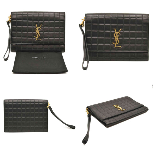 SAINT LAURENT Cassandra Quilted Leather Pouch Black