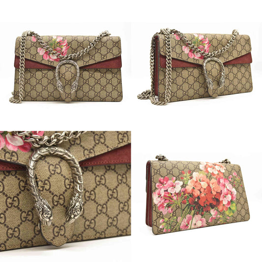 GUCCI GG Supreme Monogram Suede Small Dionysus Shoulder Bag Beige Ebony Taupe Blooms