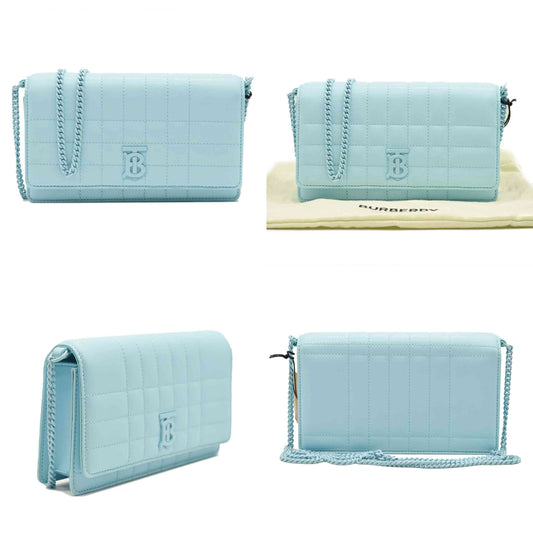 BURBERRY Lola TB Quilted Leather Clutch on Chain Sky Blue