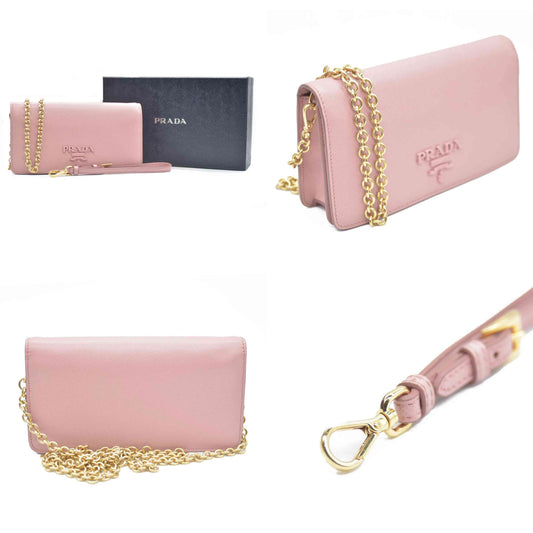 Prada Saffiano Cahier Chain Wallet Petalo