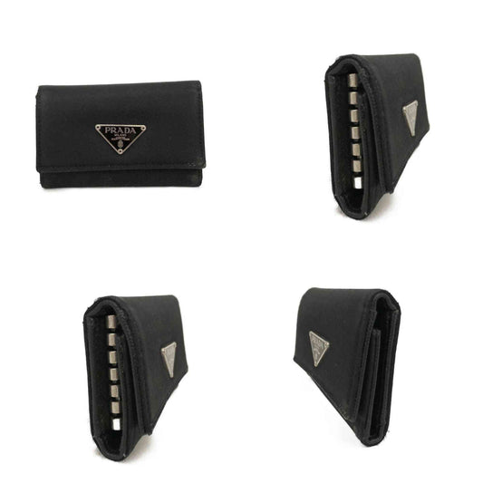 PRADA Logo Plate Nylon 6 Ring Key Case Black