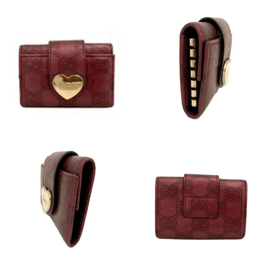 GUCCI Ssima GG Logo Heart Leather 6 Ring Key Case Red