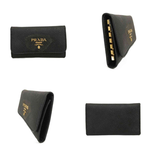 PRADA Saffiano Leather 6 Ring Key Case Black