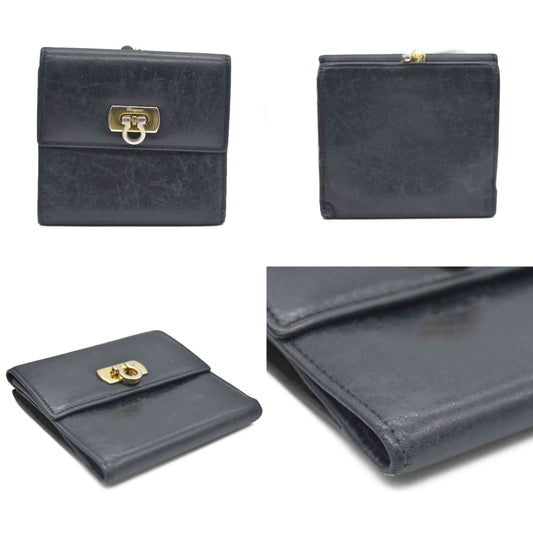 Salvatore Ferragamo Gancini Clip Leather Trifold Wallet Black