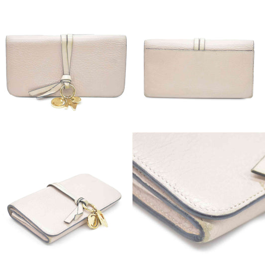 Chloe Alphabet Leather Long Bifold Wallet Purse Beige