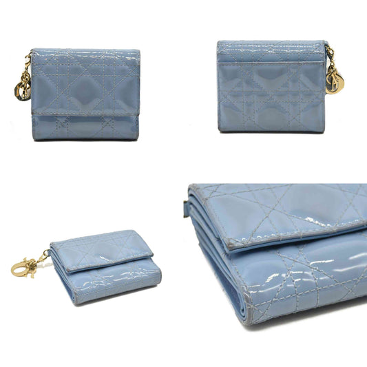 Christian Dior Patent Cannage Lady Dior Lotus Wallet Light Blue