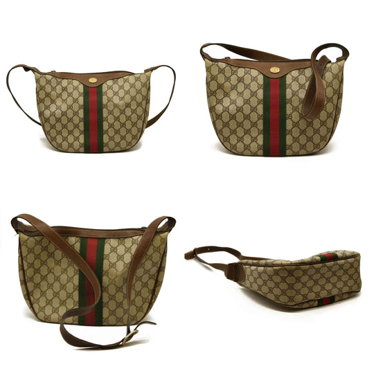 Gucci GG Supreme Monogram Web Small Ophidia Half Moon Hobo Brown