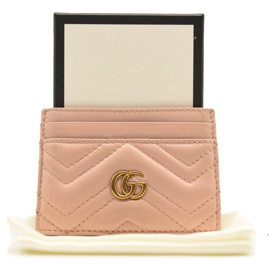 GUCCI Calfskin Matelasse GG Marmont Card Holder Perfect Pink