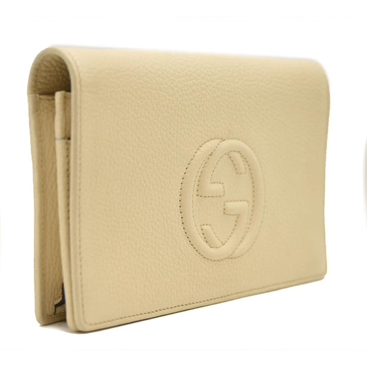 GUCCI Pebbled Calfskin Soho Wallet on Chain Ivoire