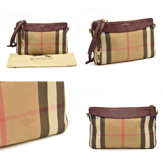 Burberry House Check Derby Peyton Crossbody Clutch Bag Mahogany Red