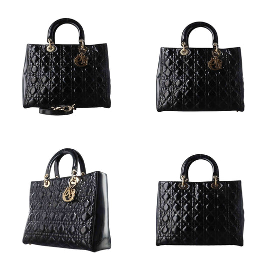 Christian Dior Crinkled Patent Cannage Large Lady Dior Black