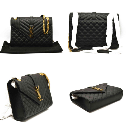 Saint Laurent Grain De Poudre Textured Mixed Matelasse Triquilt Medium Monogram Satchel Black
