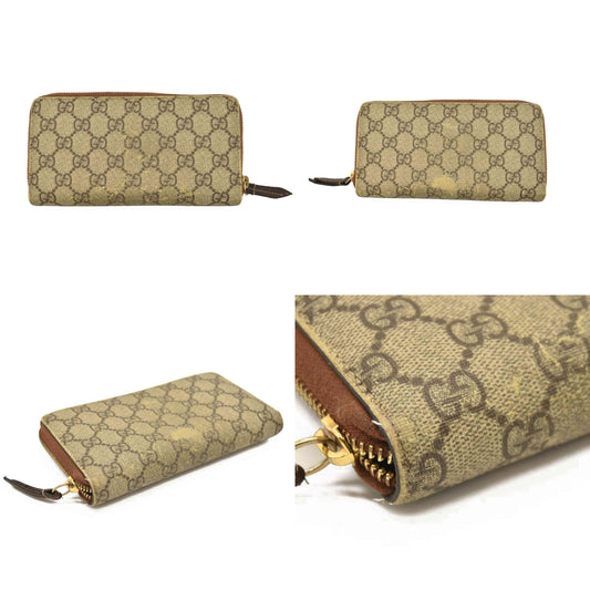 Gucci Monogram Dollar Calfskin Zip Around Compact Wallet Beige Ebony