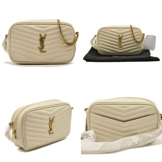 SAINT LAURENT Grain De Poudre Matelasse Monogram Mini Lou Camera Bag Crema Soft