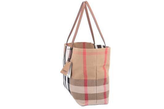 Burberry London Tote Shopper Check Beige Textile Brown Leather Last one