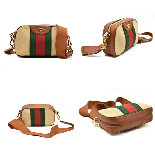 Gucci Vintage Canvas Web Shoulder Bag Sand Cuir
