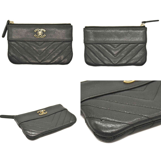 Chanel Sheepskin Chevron Quilted Small Vintage Mademoiselle Cosmetic Case Black