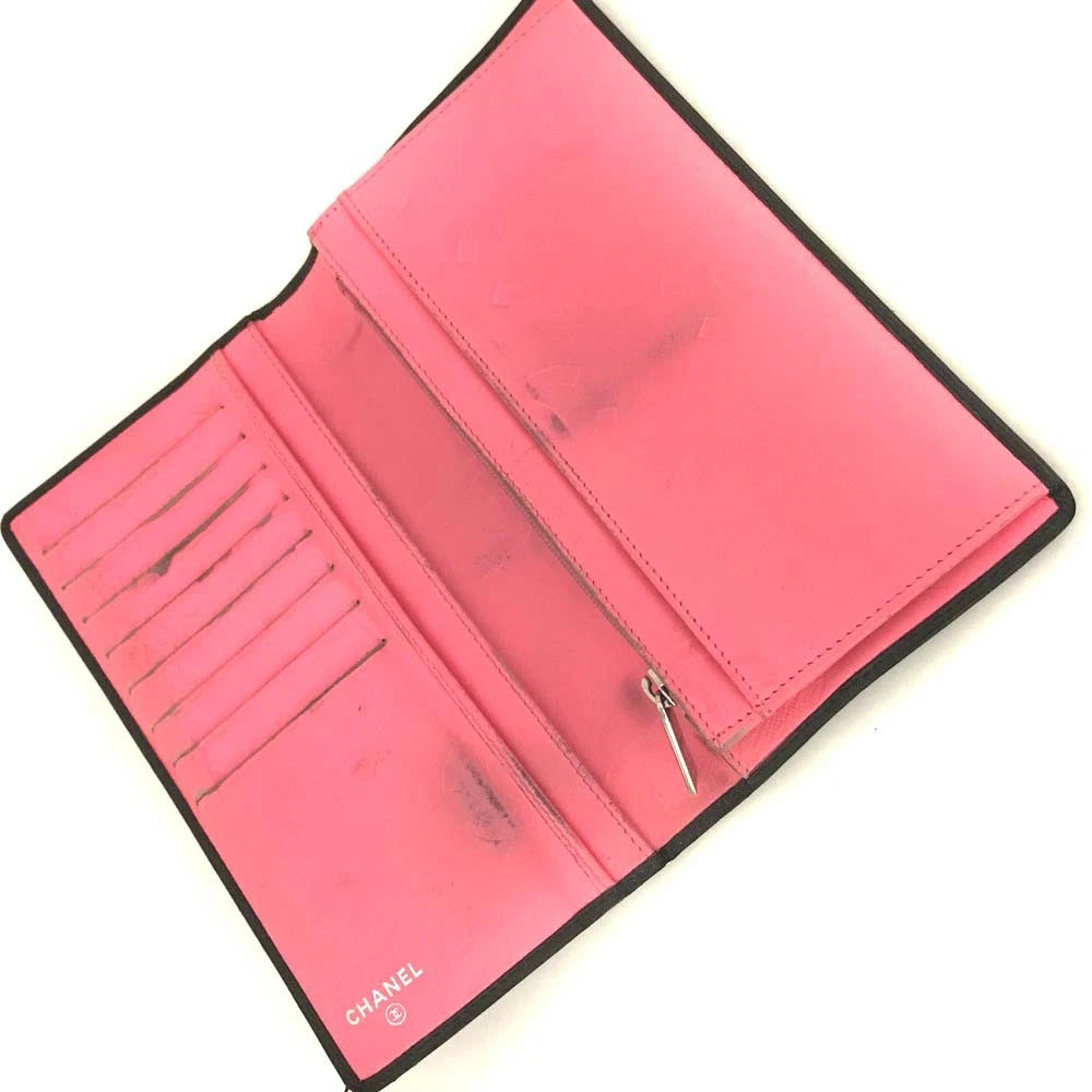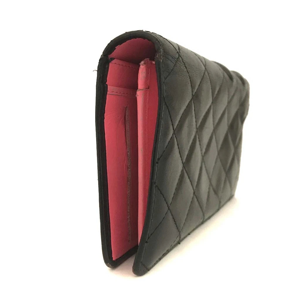 $1075 CHANEL Combon Line Lambskin Long Bifold Wallet Black