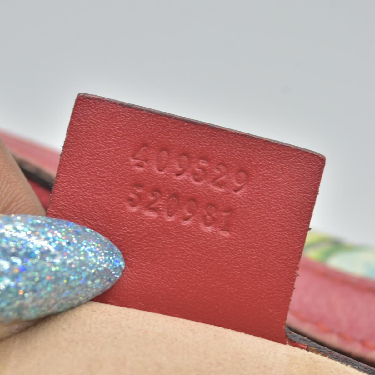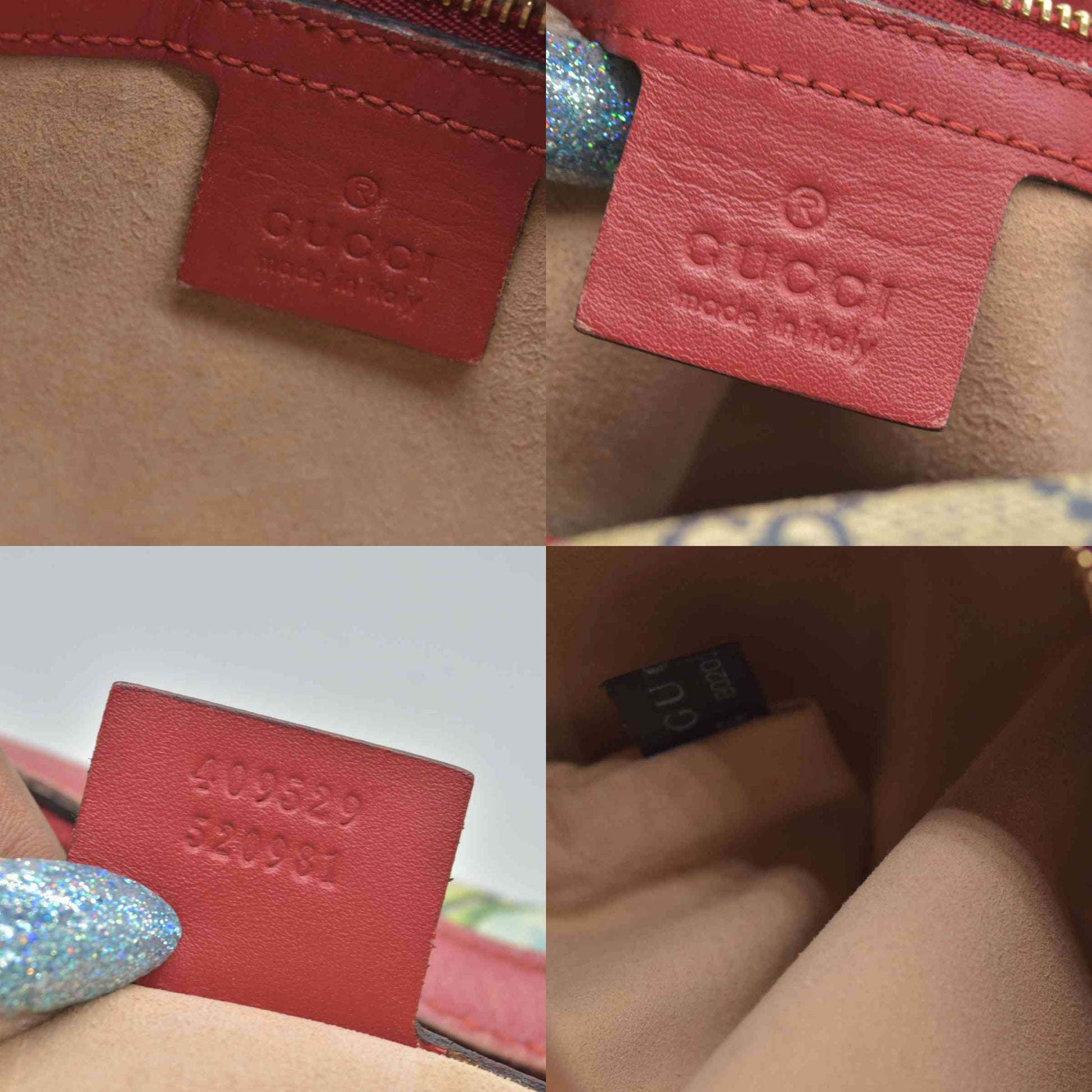 $1390 Gucci GG Supreme Monogram Blooms Small Boston Beige Blue Navy Hibiscus Red