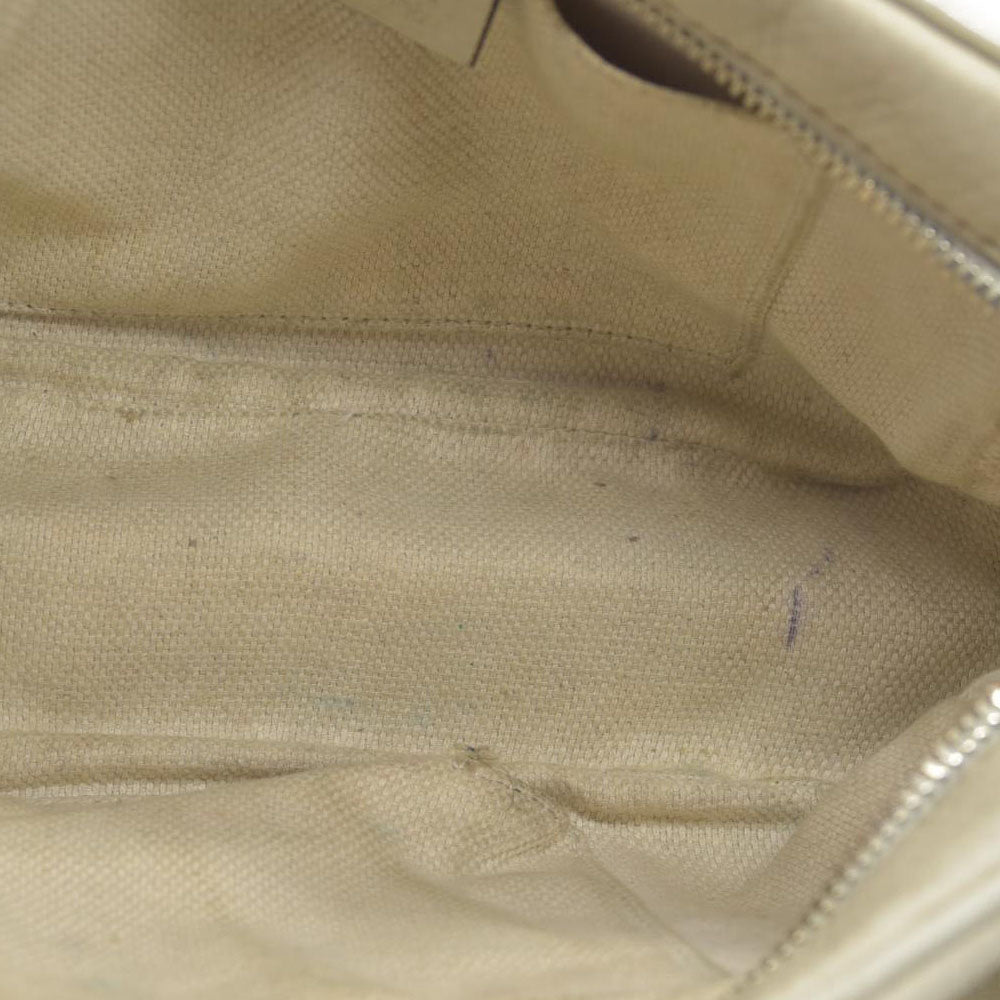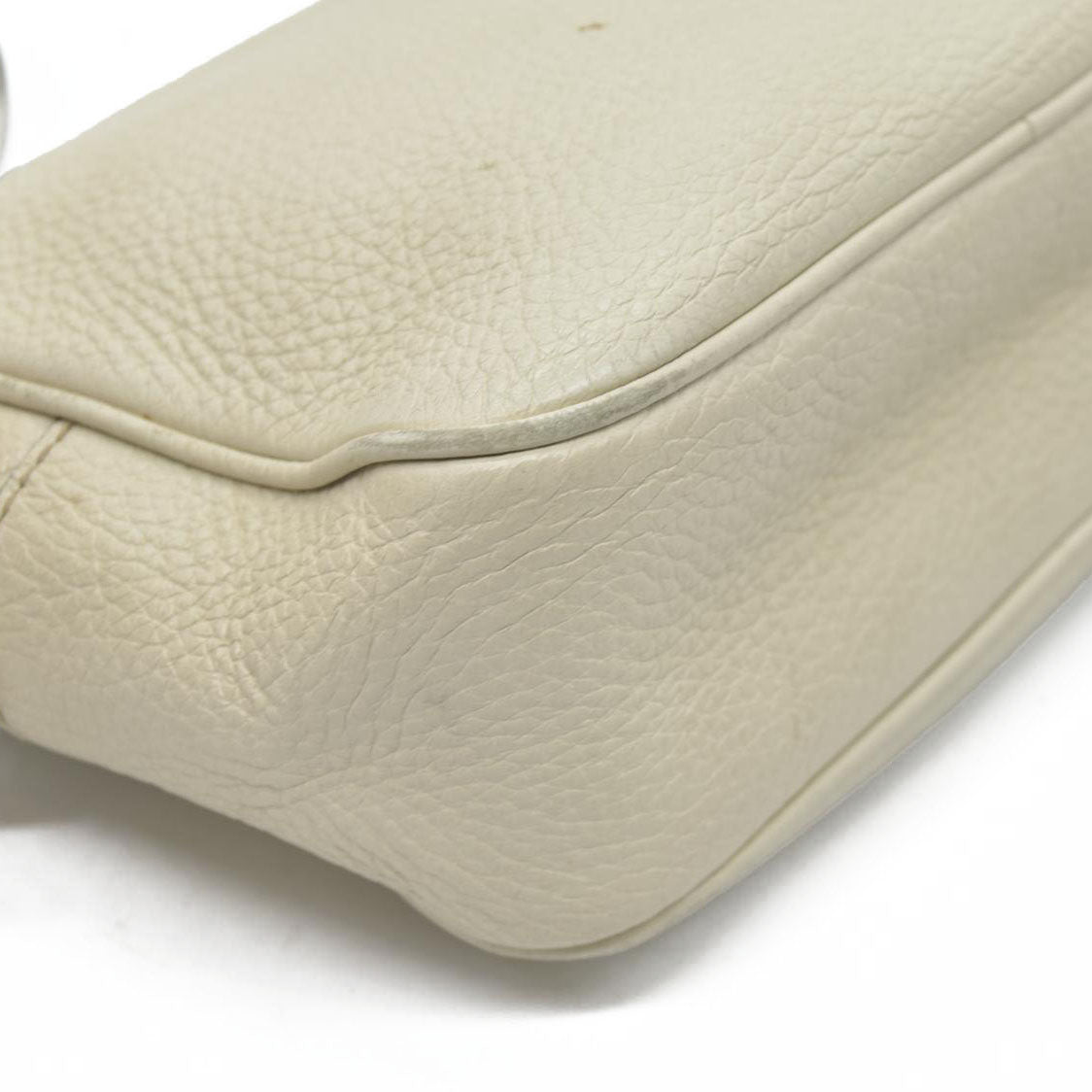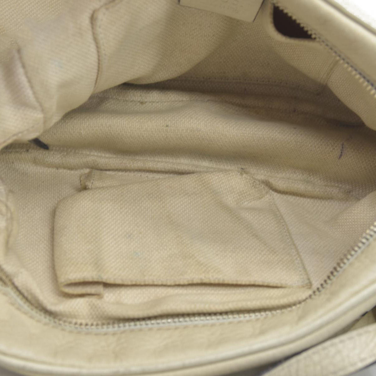 Heavy residue at interior; minor discoloration at exterior; minor scratches at hardware; shape has relaxed due to wear