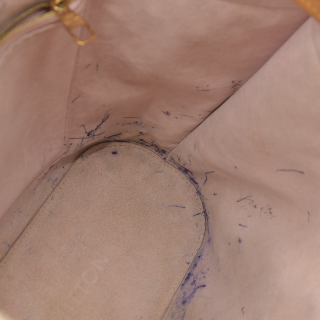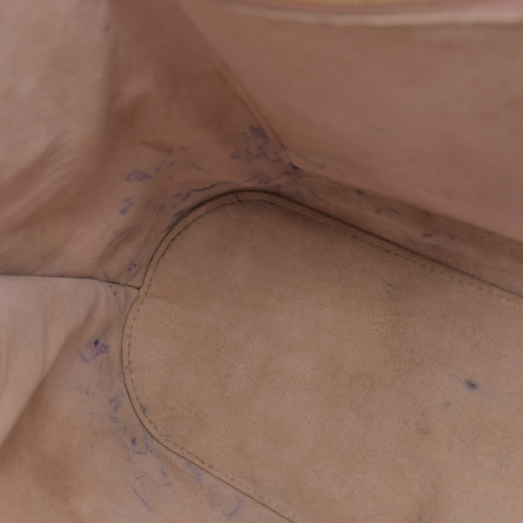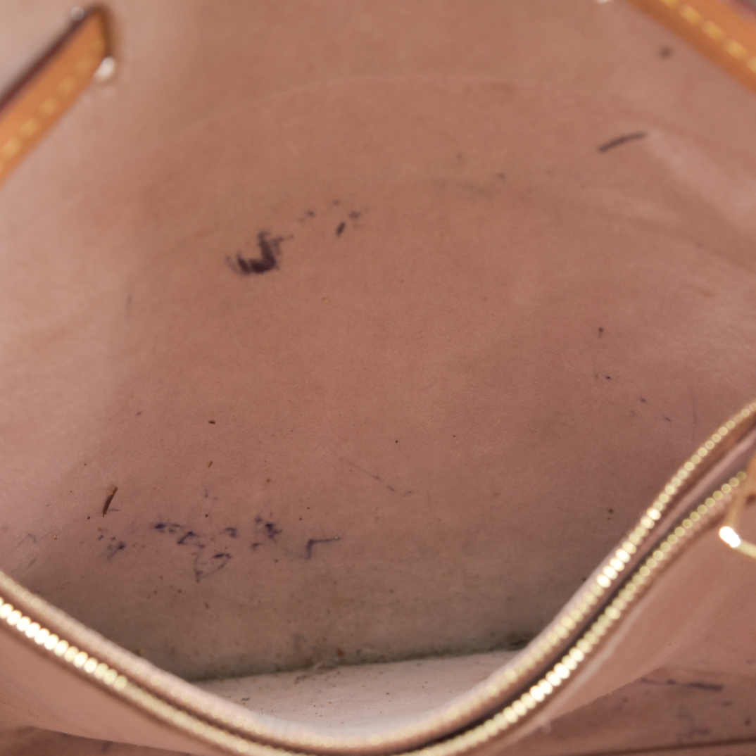 This is an authentic LOUIS VUITTON Damier Azur Girolata. This shoulder bag is crafted of Louis Vuitton's checkerboard coated canvas in blue and white with vachetta leather top handles and removable shoulder strap. The vachetta drawstring opens the bag to a pink microfiber interior with a zippered pocket and patch pocket.