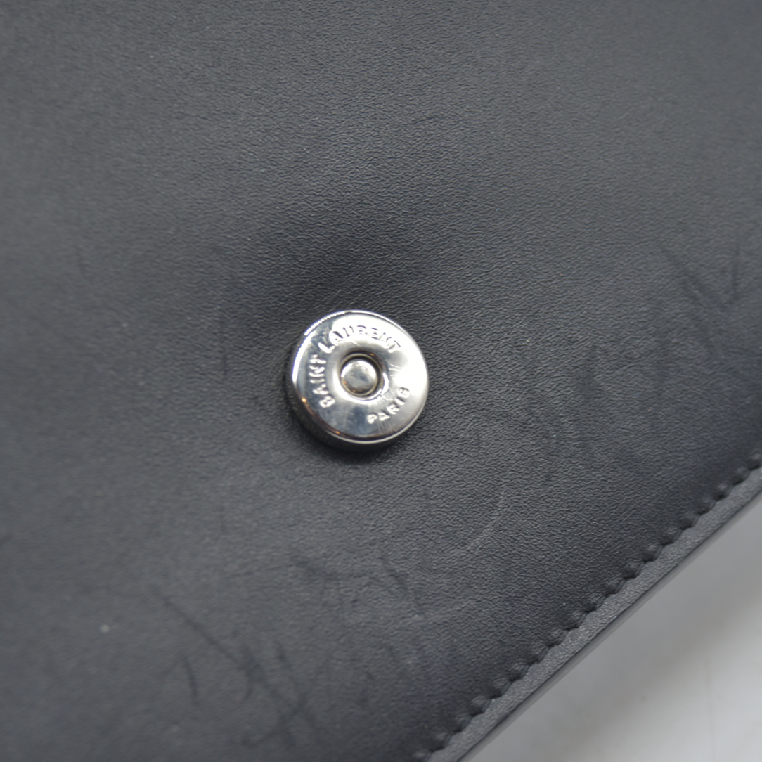 $2100 Saint Laurent Smooth Calfskin Classic Monogram Kate Tassel Chain Wallet Black