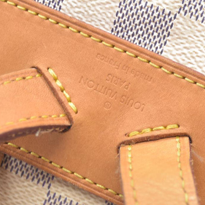 This is an authentic LOUIS VUITTON Damier Azur Sperone Backpack. This refined backpack is crafted of damier checkered canvas in azure blue and white. This bag features a frontal vertical zipper pocket and vachetta leather trim including adjustable shoulder straps, a cinch cord top and a belt strap closure for the flap with brass hardware. This opens to a cotton candy pink microfiber interior with patch pockets. This is an ideal everyday backpack from Louis Vuitton!