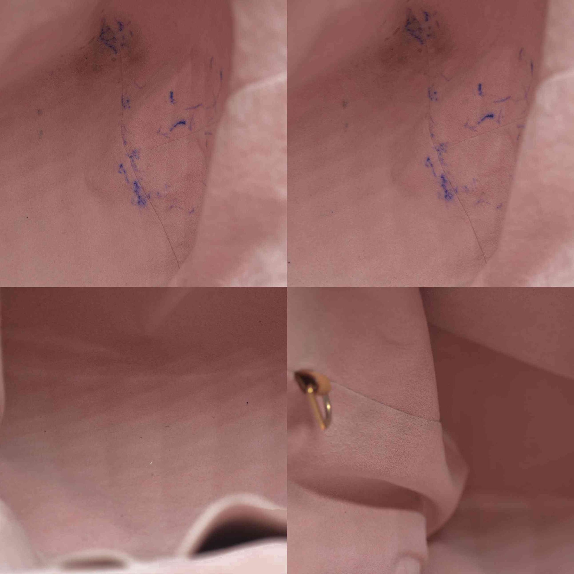 - Heavy discoloration throughout; heavy residue at interior; moderate scuffs at exterior; moderate creasing at strap; moderate scratches at hardware; shape has relaxed due to wear; minor residue at exterior; minor scratches at trim