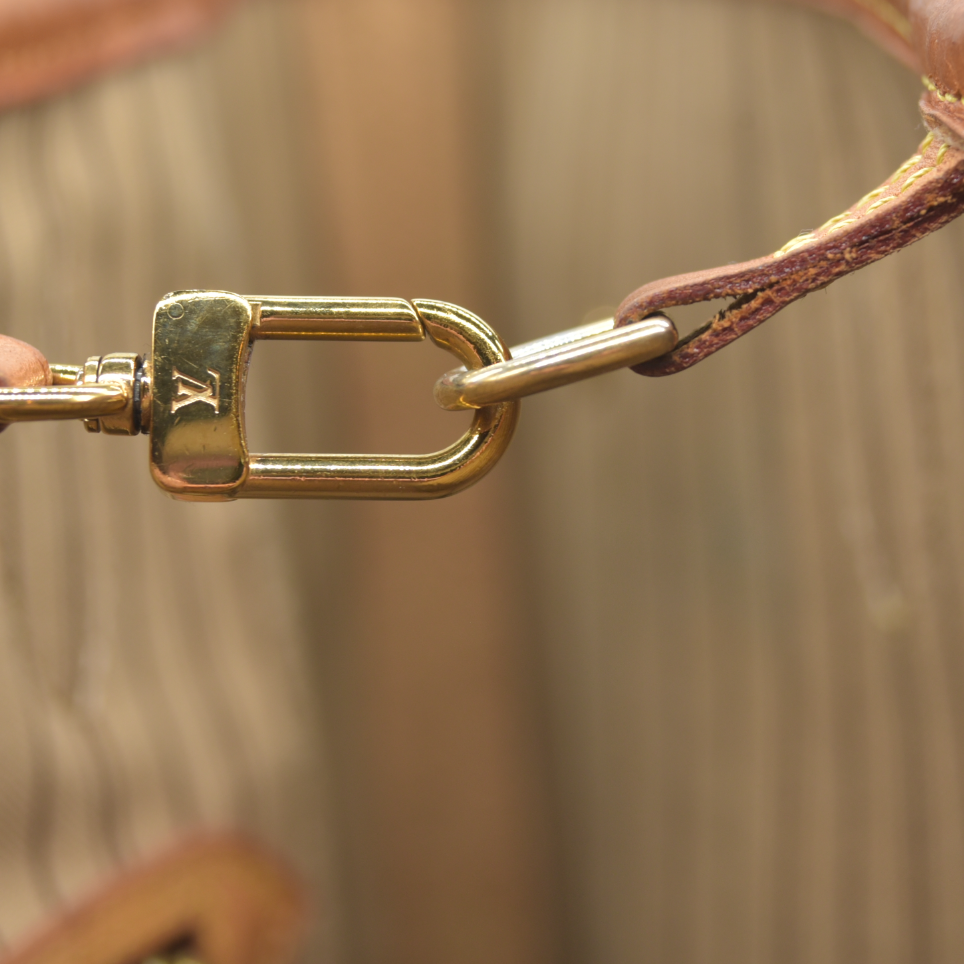 Handle: Edge wear, wear at resin glazing, patina of vachetta, liquid marks