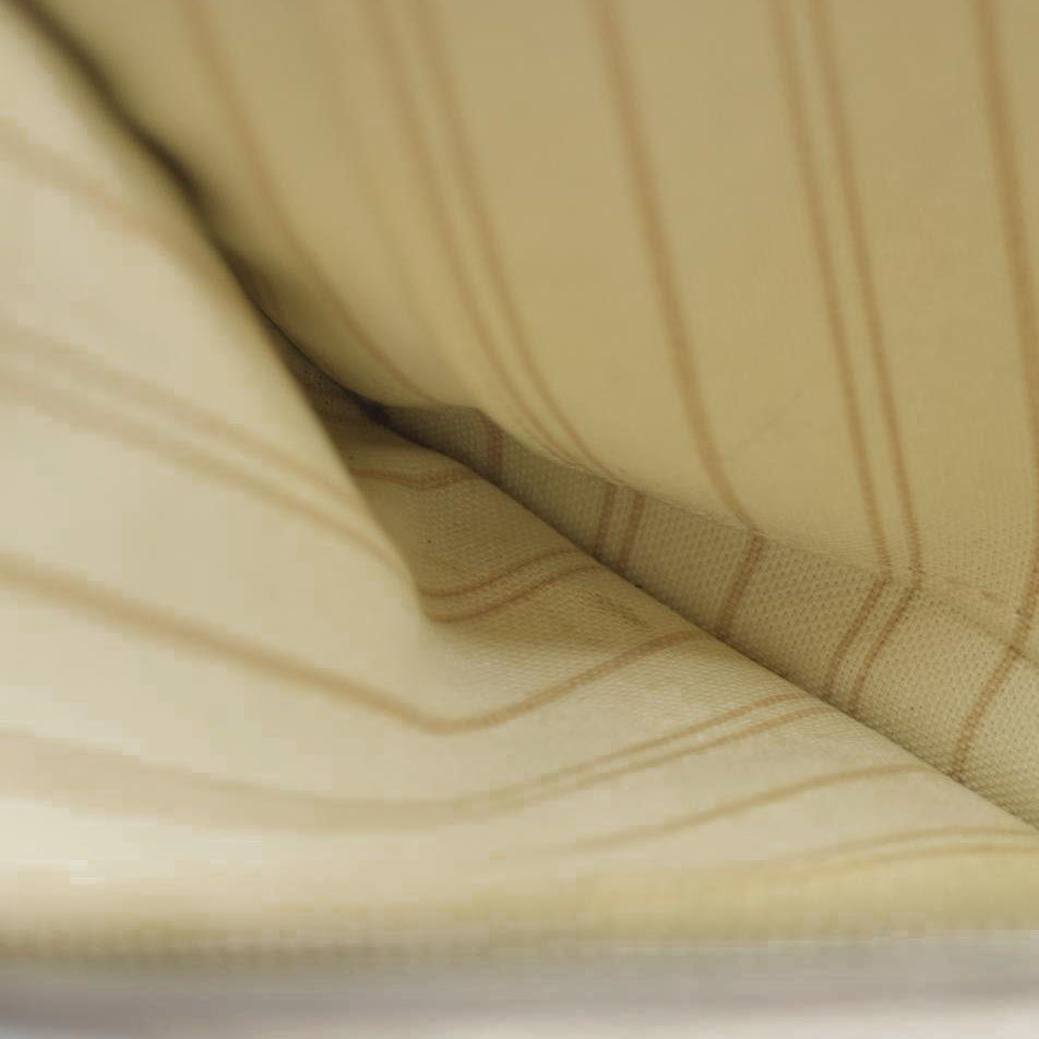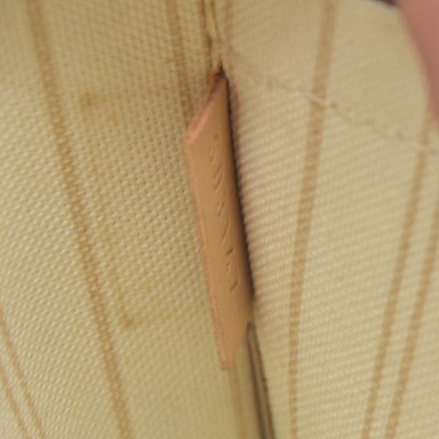 This an authentic LOUIS VUITTON Damier Azur Neverfull MM GM Pochette. This pouch is crafted of signature Louis Vuitton azur check canvas in blue and white with a vachetta leather cowhide wristlet strap. The brushed gold top zipper opens to a beige striped fabric interior with a patch pocket.