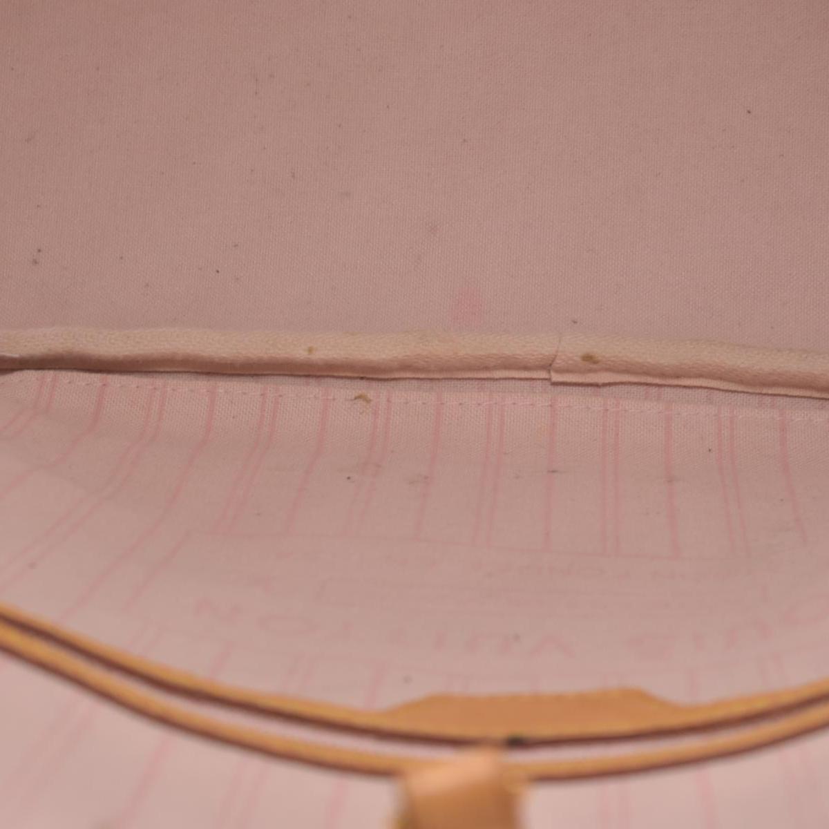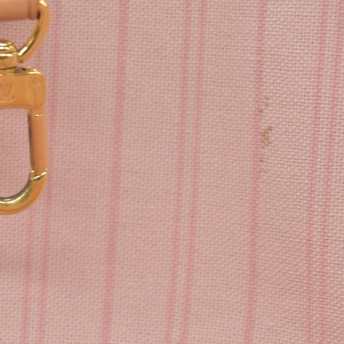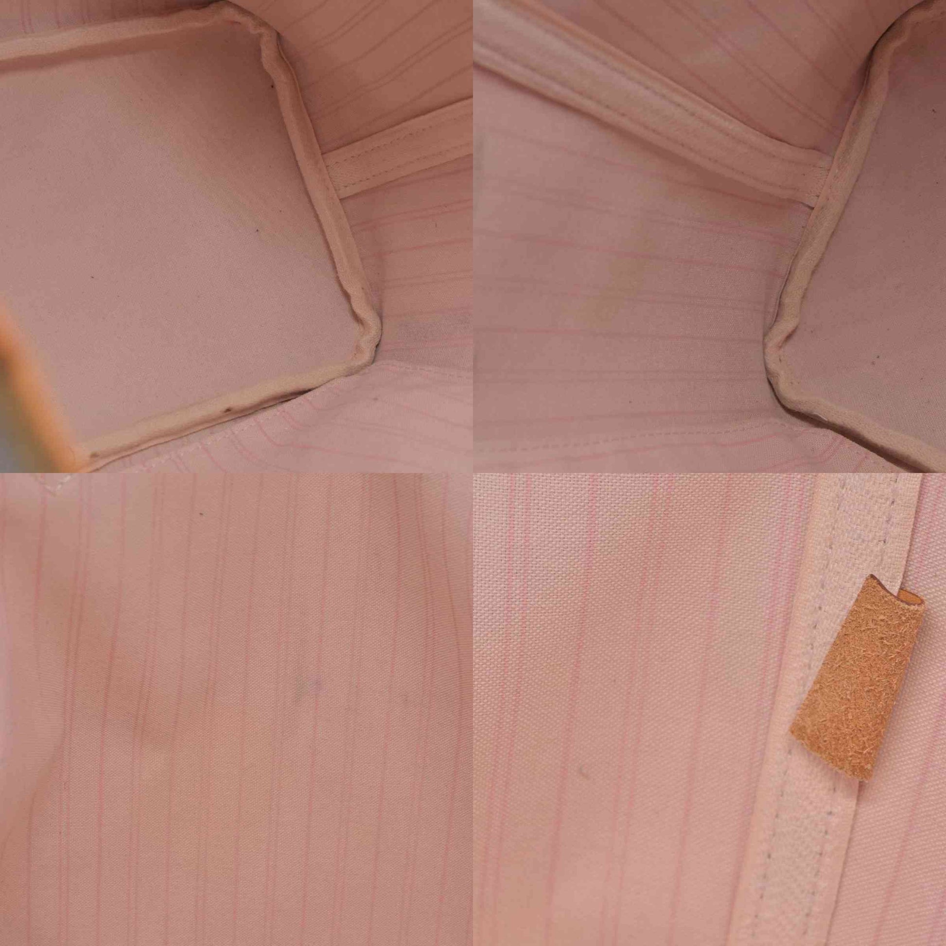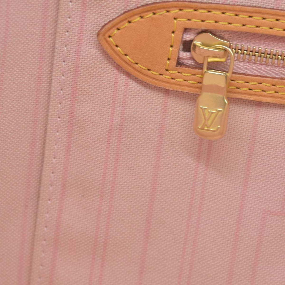 This is an authentic LOUIS VUITTON Damier Azur Neverfull MM. This stylish tote is crafted of Louis Vuitton's signature damier canvas in blue and white. This shoulder bag features vachetta cowhide leather trim, including strap handles and side cinch cords, with polished brass hardware. The top is wide and open to a striped ivory fabric interior pocket.