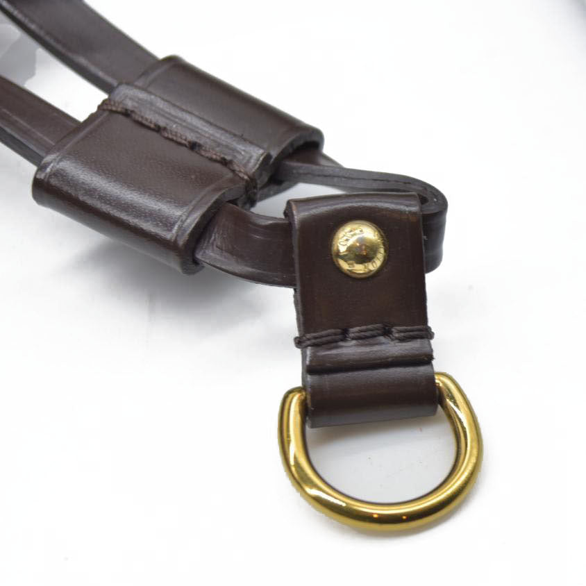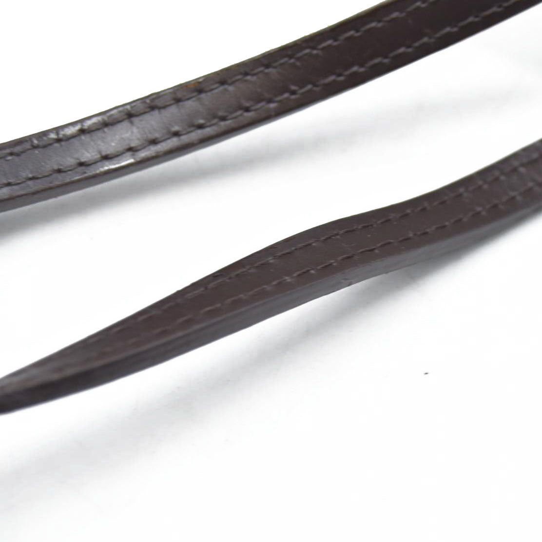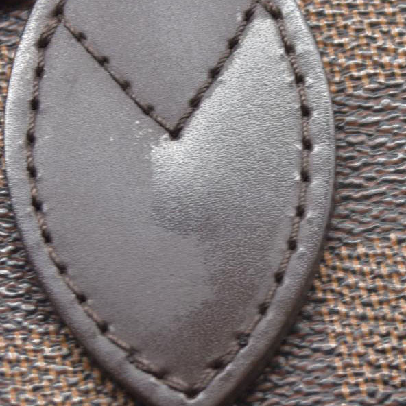 Minor discoloration at interior; minor residue throughout; minor scratches at hardware; shape has relaxed due to wear, stains and marks