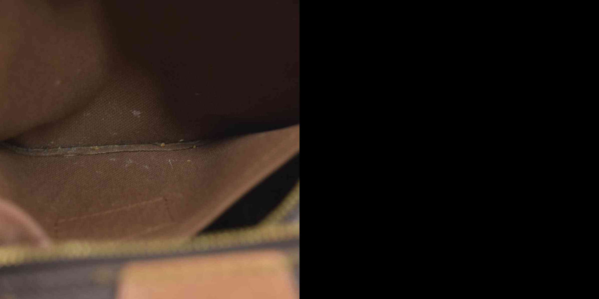 Heavy discoloration at strap and at interior; moderate discoloration at hardware