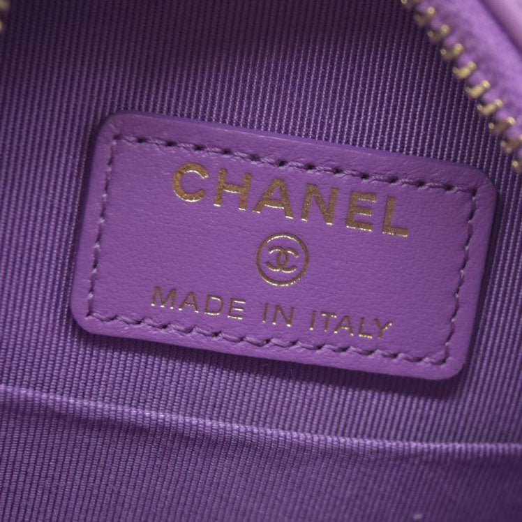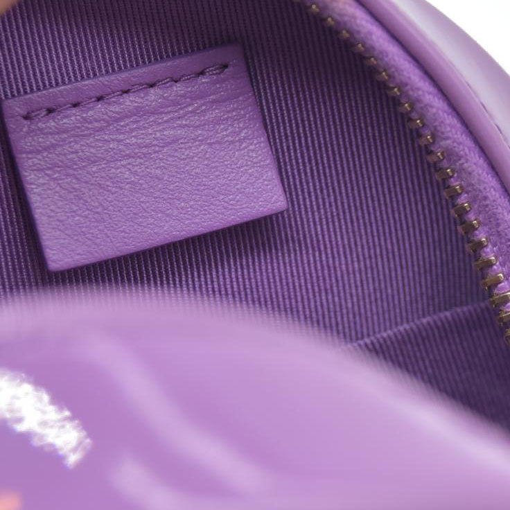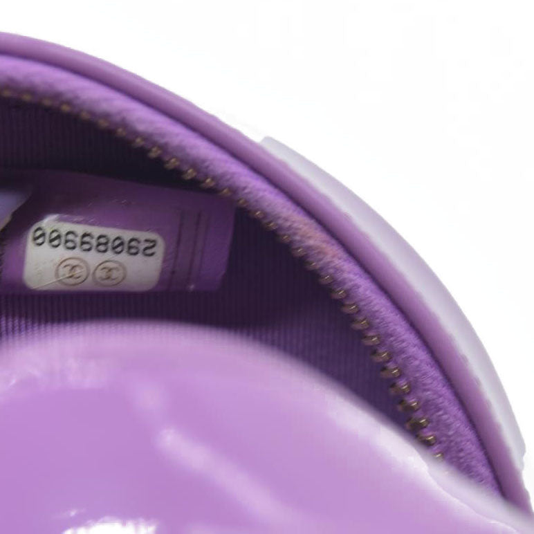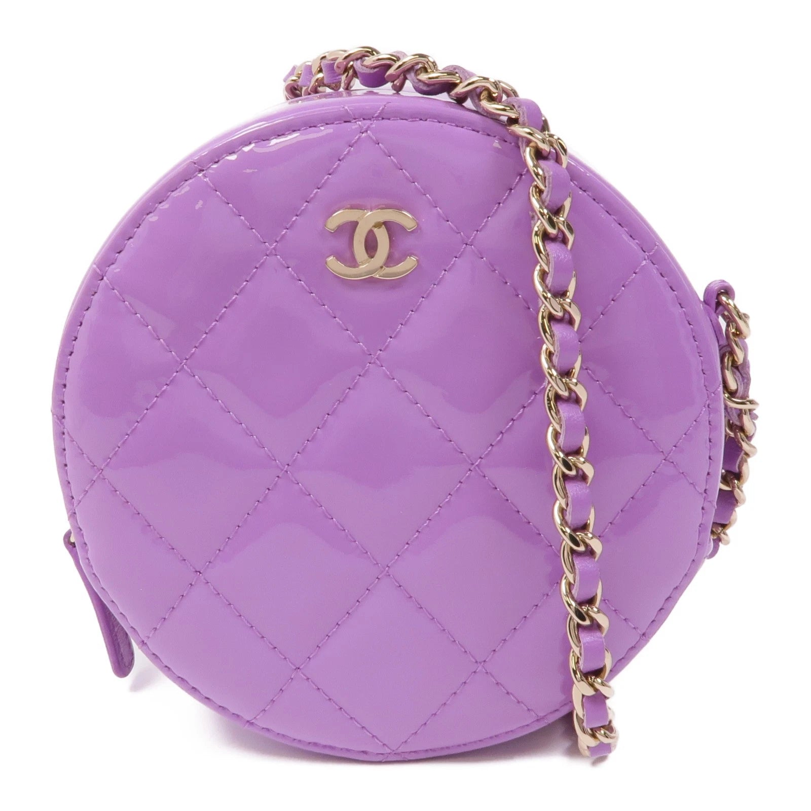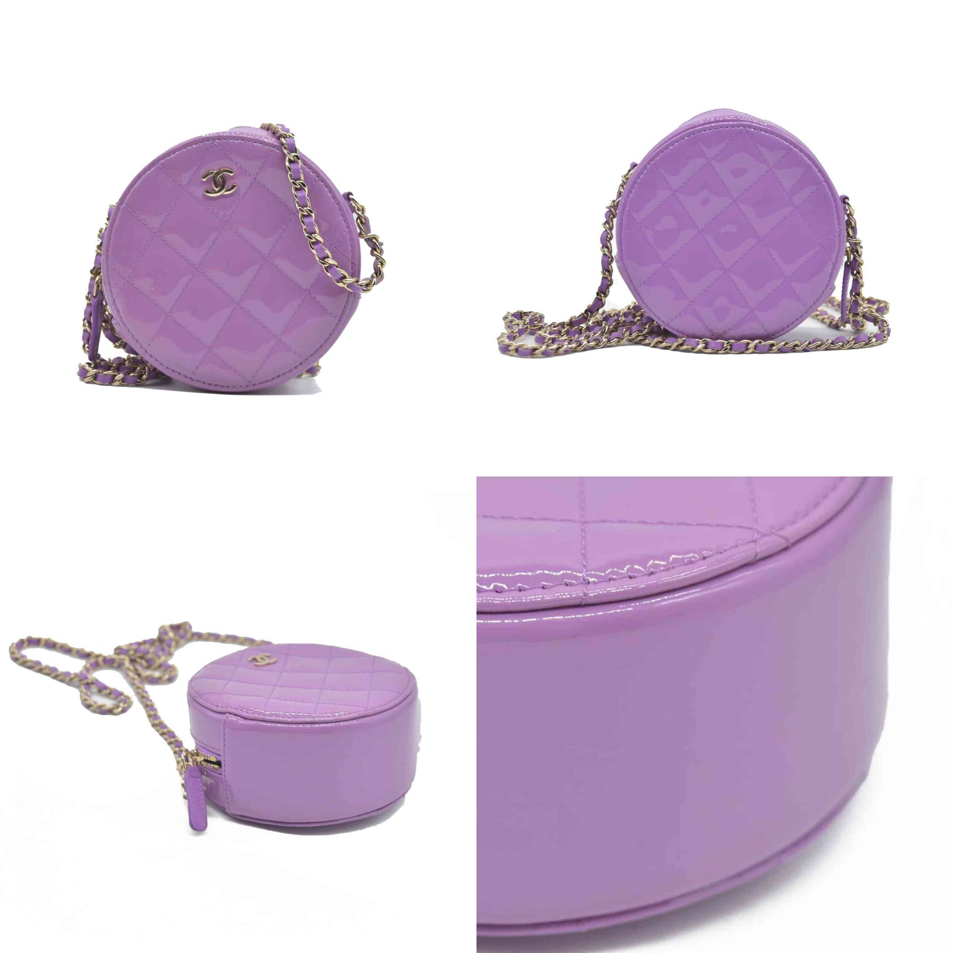 $2940 Chanel Patent Quilted Round Clutch with Chain