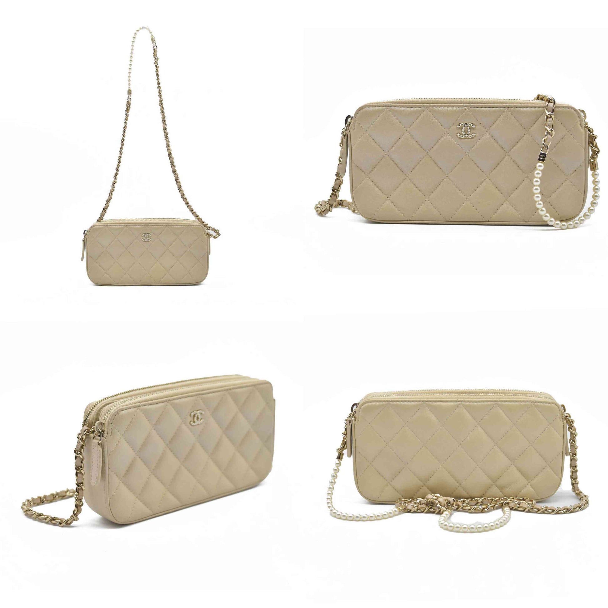 $4950 Chanel Canvas Small Deauville Clutch Beige With Pearl Chain