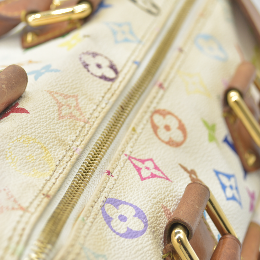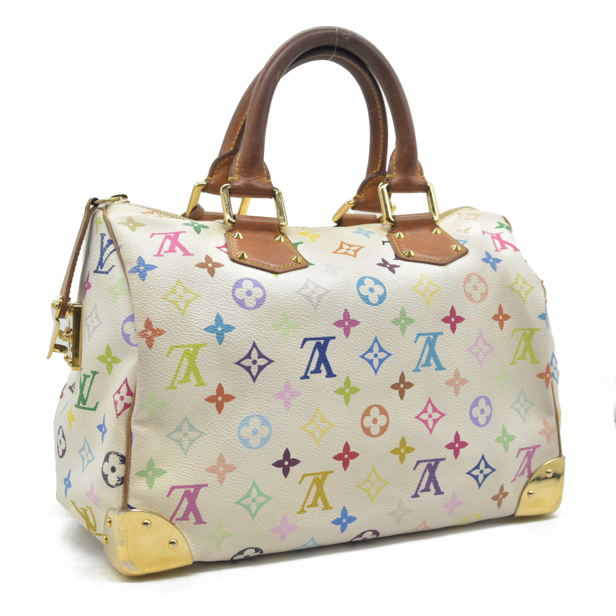 $3150 Louis Vuitton Monogram Multicolor Speedy 30 White 2004
