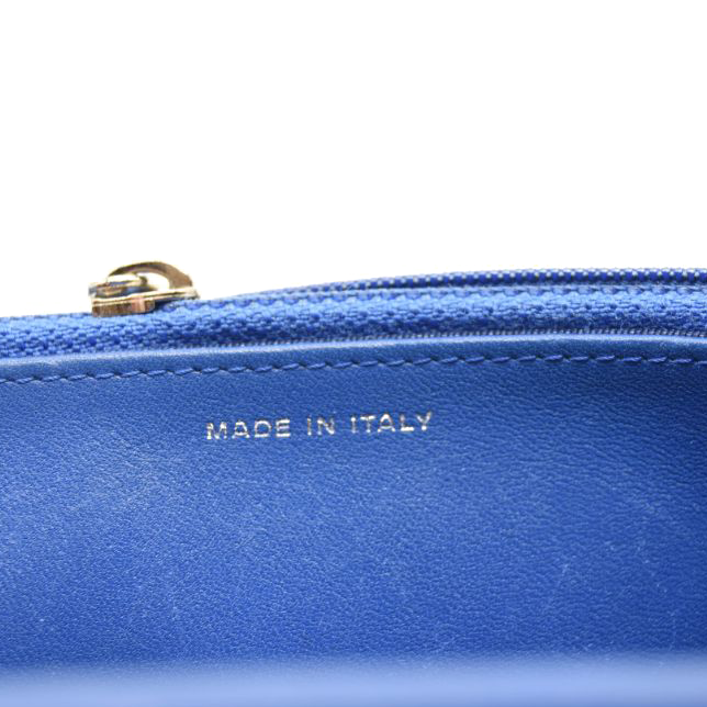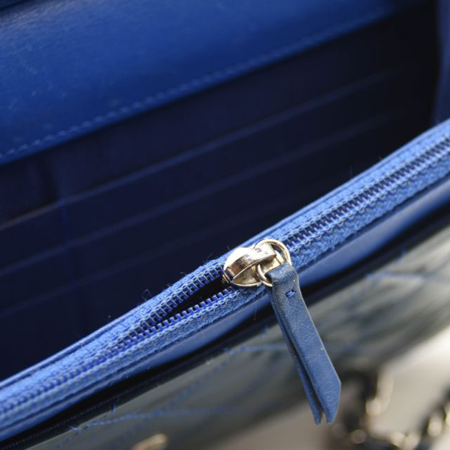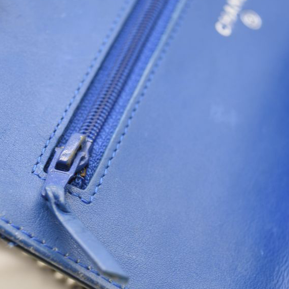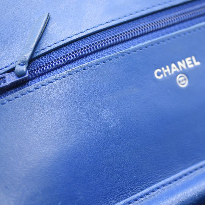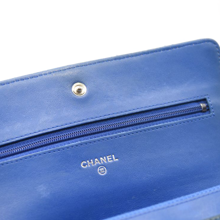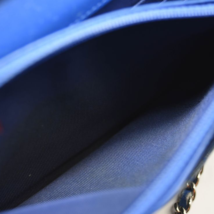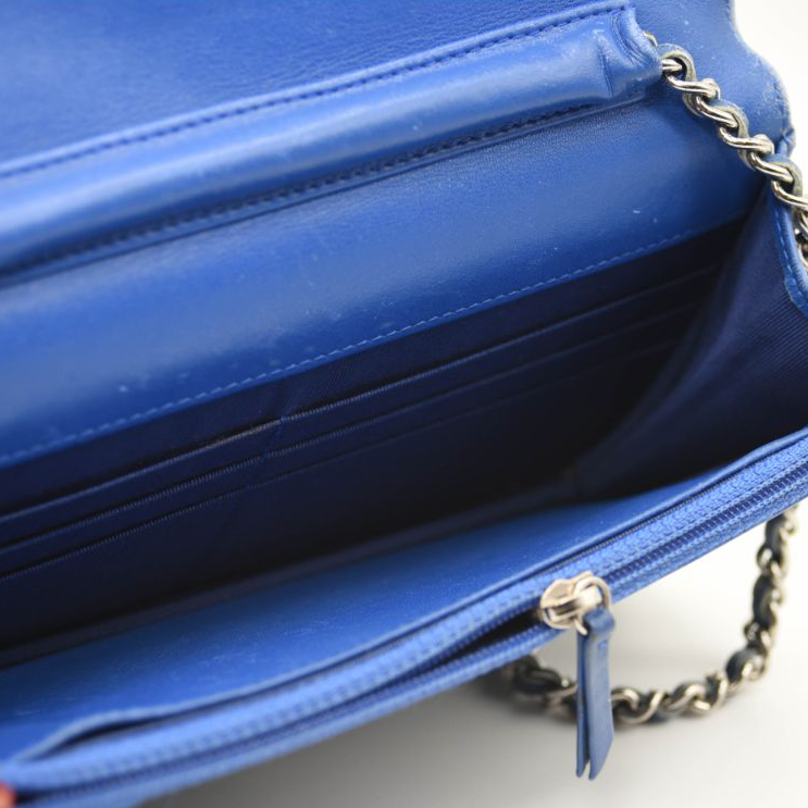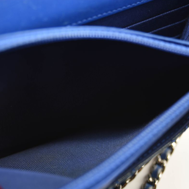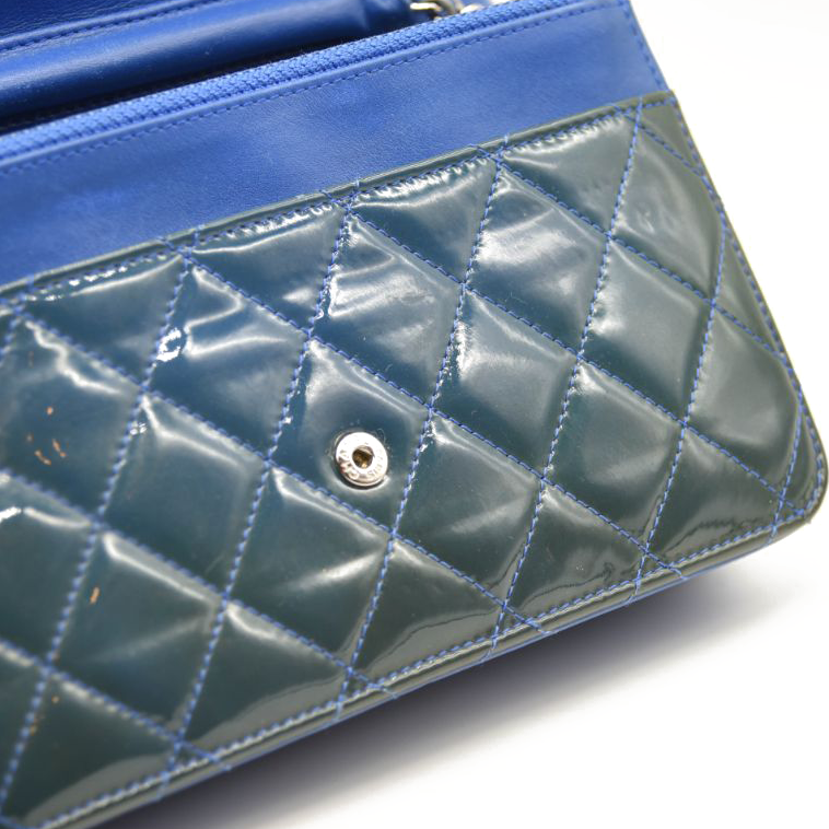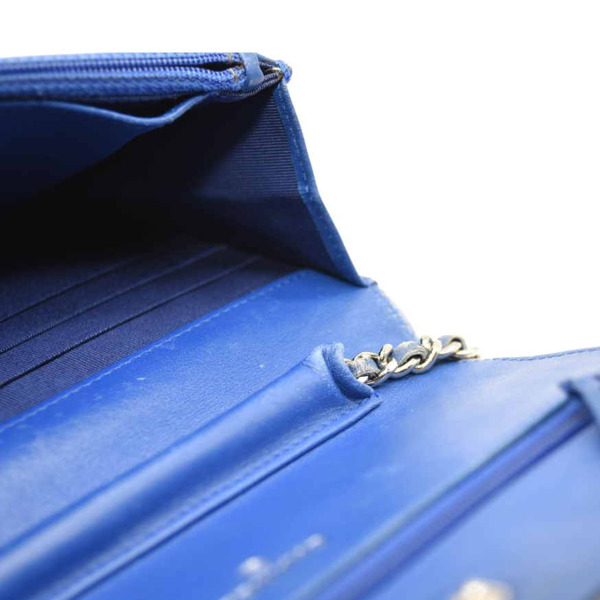 $3350 Chanel Classic Quilted Patent Wallet On Chain Blue