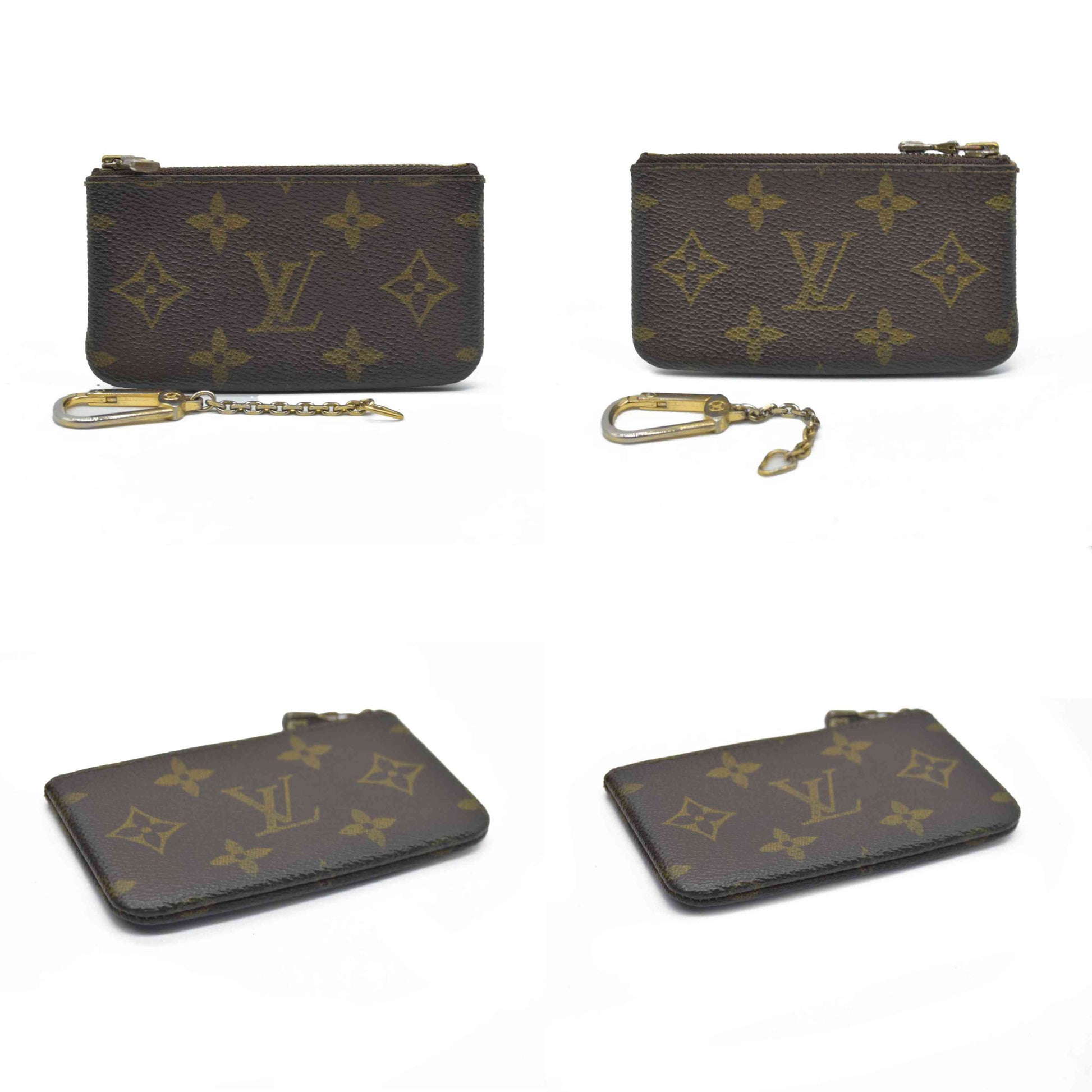 This is an authentic LOUIS VUITTON Monogram Key Pouch. This pouch is crafted of Louis Vuitton monogram coated canvas in brown. The top zipper opens to a brown crossgrain leather interior with an attached brass clasp that can be clipped to your keys or handbag.