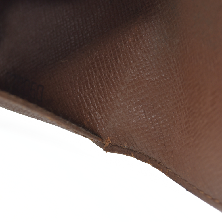 The exterior is rubbed with scratches. There are rubbed marks on the inside. The inside of pocket is peeled. The surface platings of the hardware is peeling off.