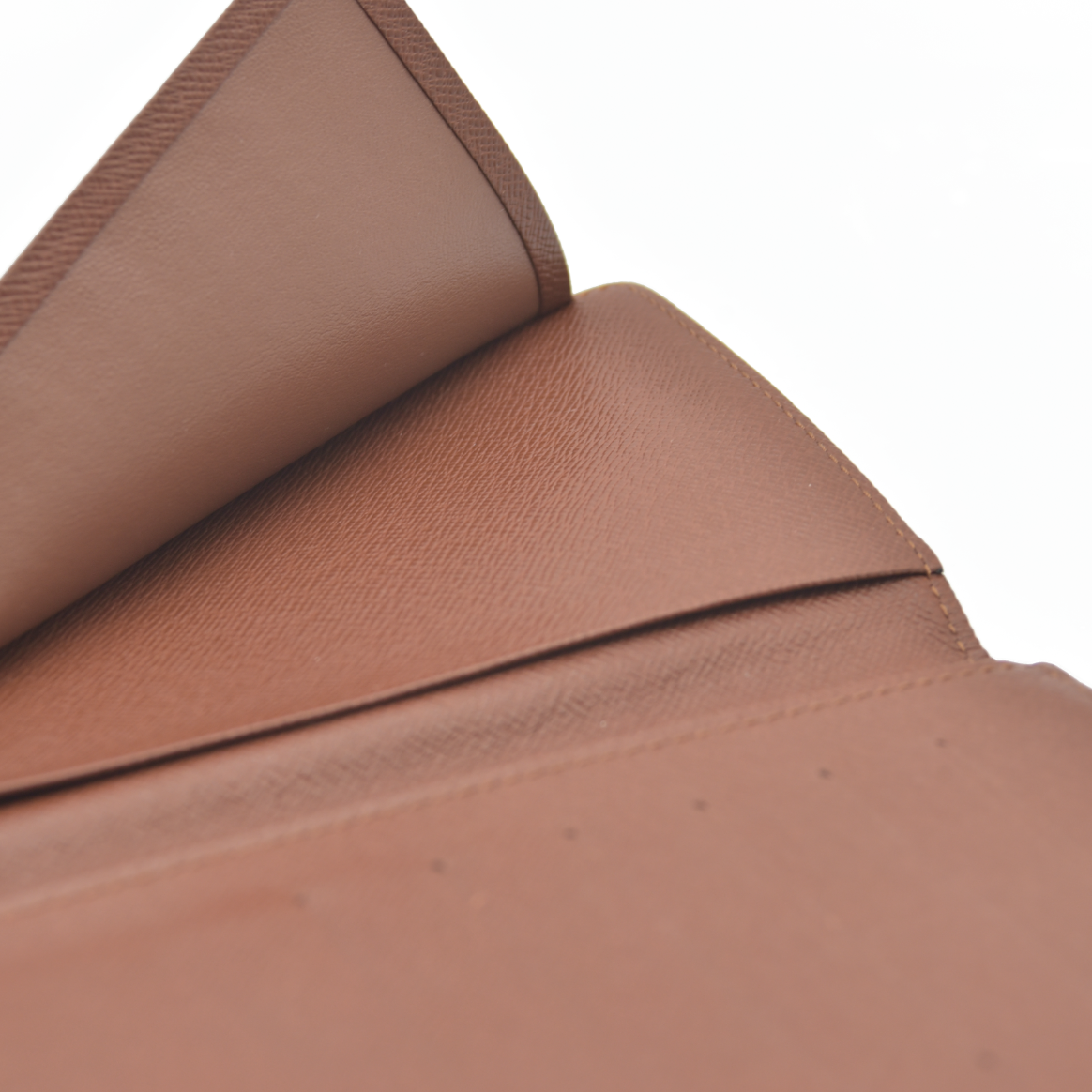 This is an authentic LOUIS VUITTON Monogram Pocket Agenda Cover This organizer wallet is crafted of monogram coated canvas. It opens to a terra cotta cross-grain leather interior with card slots and patch pockets.