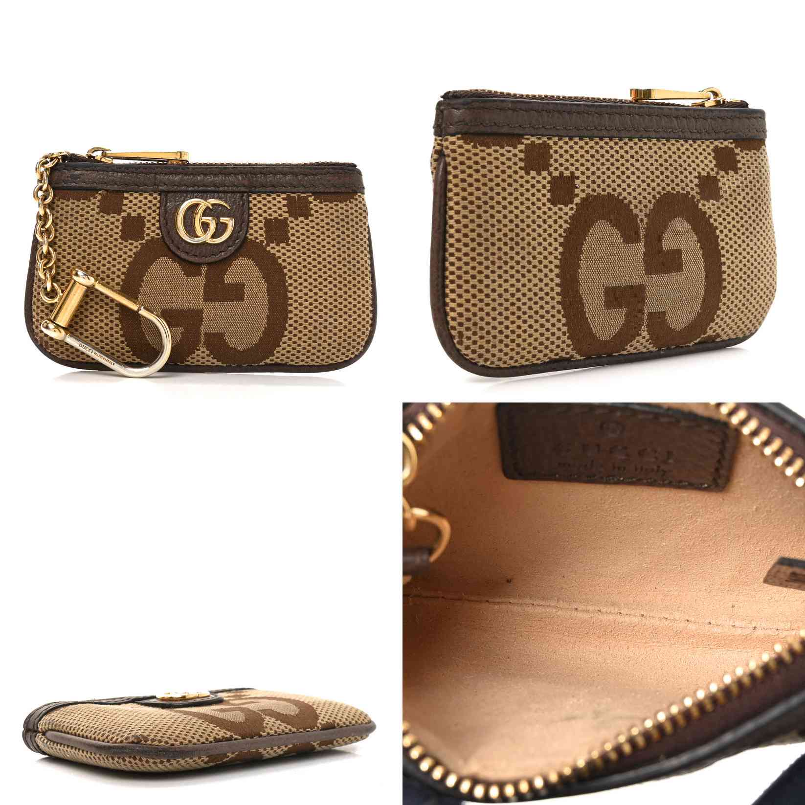 $450 Gucci Monogram Jumbo GG Textured Dollar Calfskin Ophidia Key Case Camel Ebony New Acero