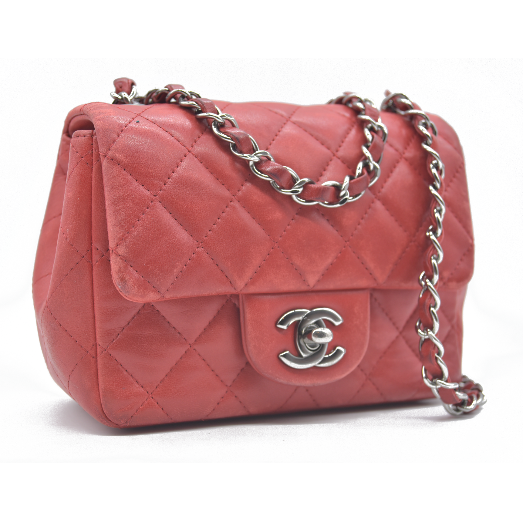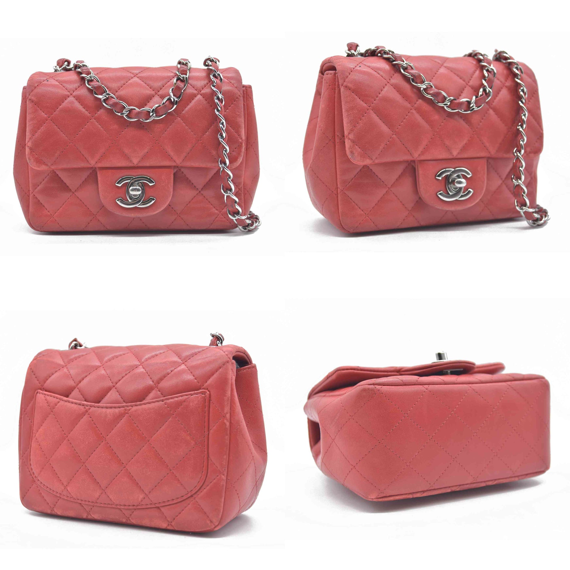 $5200 Chanel Classic Mini Square Flap Bag Red