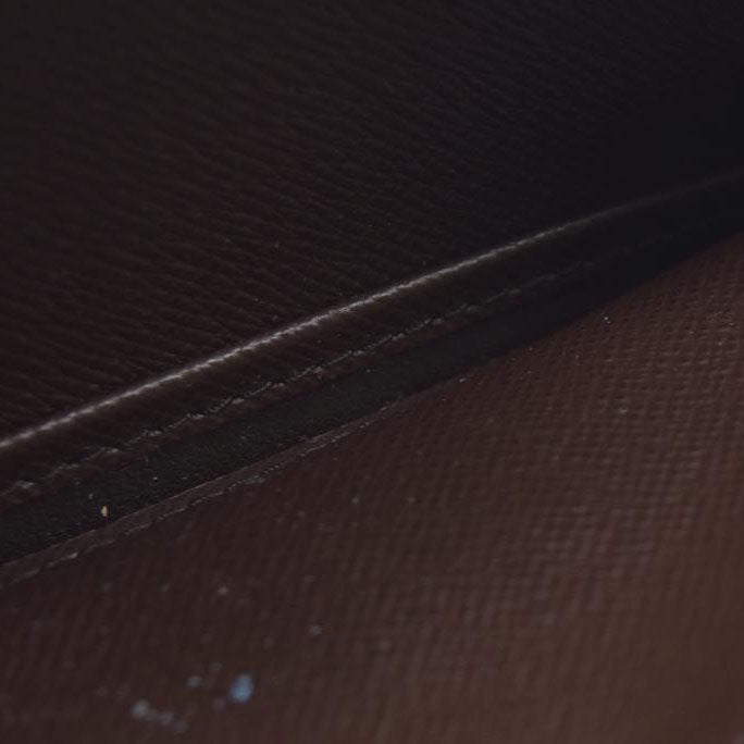 This is an authentic LOUIS VUITTON Damier Ebene Porte Tresor Etui Papier Wallet. This wallet is crafted of Louis Vuitton signature damier canvas. The flap opens to a dark brown cross grain leather with card slots, a patch pocket and a snap pocket.