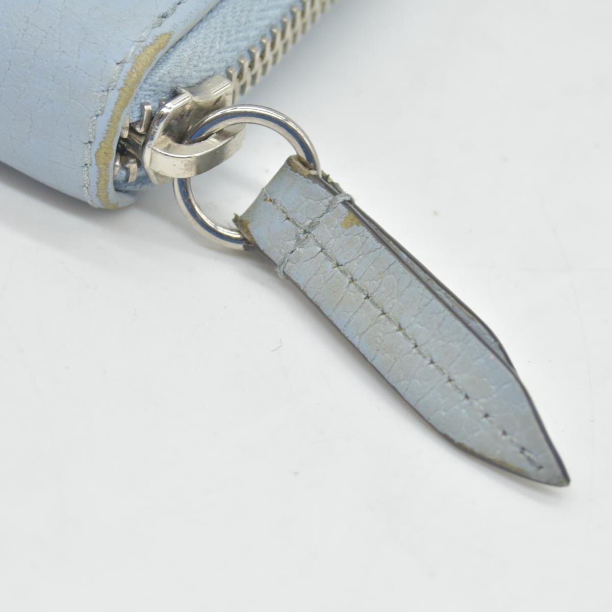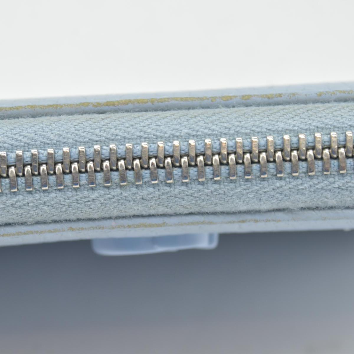 $660 Gucci Blue Calfskin Monochrome Dollar GG Marmont Zip Around Card Holder