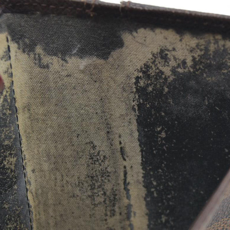 The exterior is rubbed with scratches. There are rubbed marks on the inside. There are loose stitches around the folding area. The inside of pocket/cash compartment are peeled.