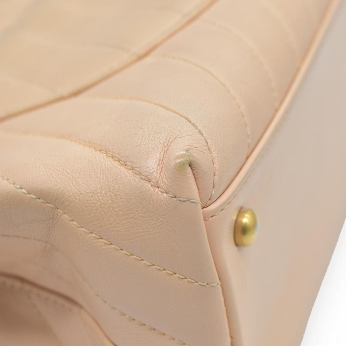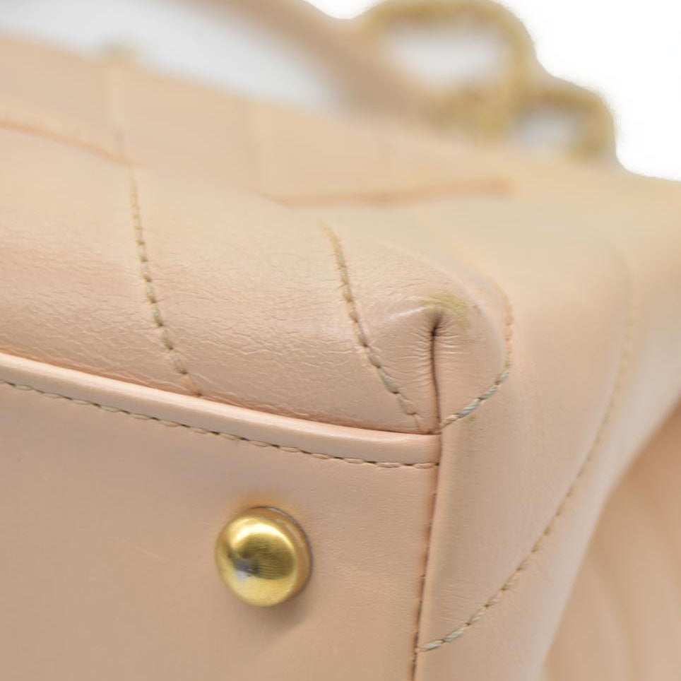 $7300 Chanel Calfskin Chevron Quilted Medium Coco Handle Flap Beige