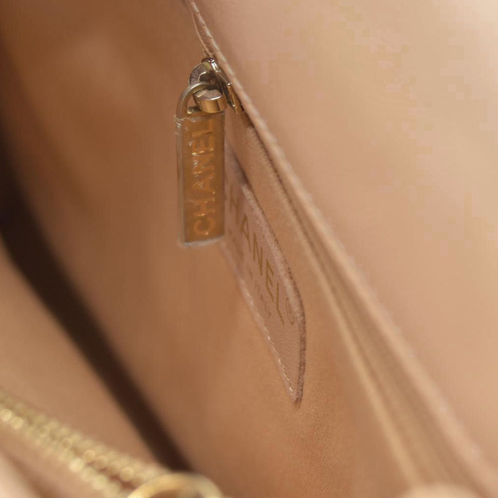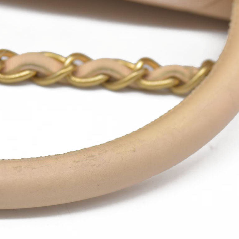 This is an authentic CHANEL Calfskin Chevron Quilted Medium Coco Handle Flap in Beige. This chic tote is crafted of chevron-quilted aged calfskin leather in beige. The bag features a rear patch pocket, a sturdy rolled leather top handle, an optional leather-threaded aged gold chain link shoulder strap, and a matching gold classic CC turn lock on the crossover flap. This opens the bag to a partitioned beige fabric interior with zipper and patch pockets.