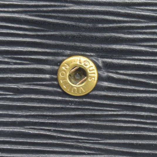 This is an authentic LOUIS VUITTON Epi French Purse Wallet in Black. This stylish wallet is crafted of Louis Vuitton signature textured epi leather in black. The strap opens to a cross-grain leather interior with card slots, patch pockets, billfold, and a compartment with a gold kiss-lock closure.