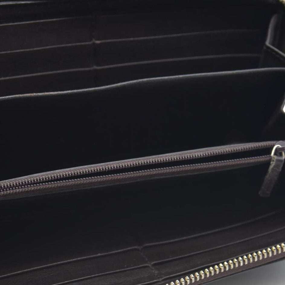 Inside: 12 credit card slots, 3 bill compartments and 1 zipper coin pocket